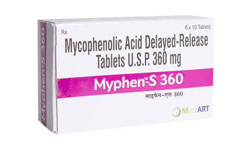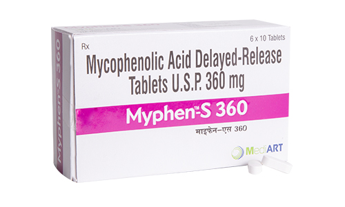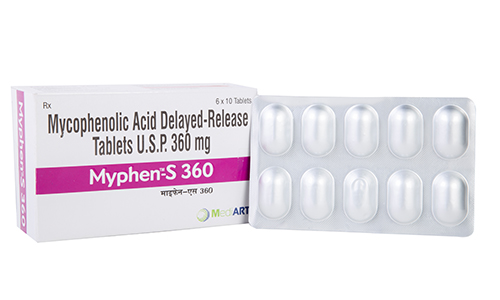 Myphen S (Mycophenolate sodium (MPS)) is an enteric coated, delayed release monosodium salt of Mycophenolate Acid (MPA).
